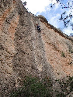 L10: sortida d'Ae llarga de la R i després 6a a protegir (hi ha algun burí xafat). just sobre la R hi ha la instal·lació de ràpel. aquí el vent semblava que em volgués arrencar de la paret.